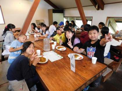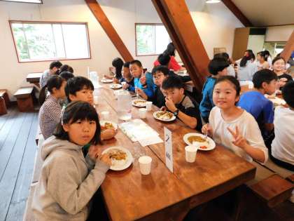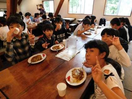 昼食は光徳牧場でカレーライスを食べました。お代わり殺到のおいしいカレーライスでした。