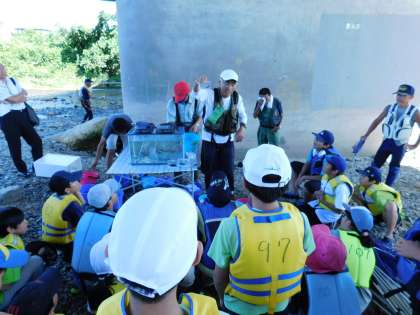 子供たちが捕ってきた魚を漁協の方が、色々と教えてくださいました。捕ってきた魚はもちろん最後に、川に戻しました。