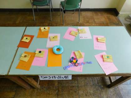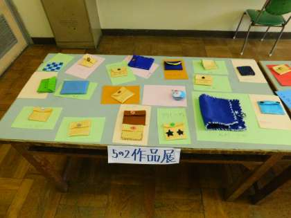 5年生が家庭科で作った作品が、展示されていました。