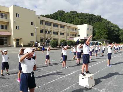 応援の練習風景です。応援団を中心に頑張ってくれています。写真は白組です。