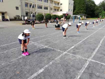準備運動は体操係の子が、頑張ってくれています。