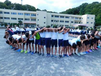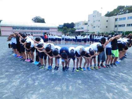 6年生は組体操の練習です。真剣な表情で取り組んでいます。きれいな波ができていました。