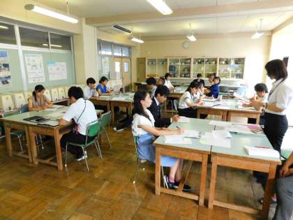 授業後は、講師の石丸先生と共に、授業の振り返りをしました。