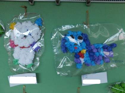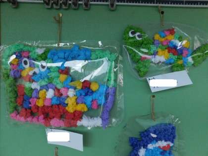 3年生の図工作品です。図工室前の廊下に飾られていました。