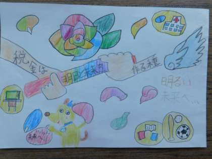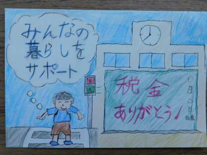 今年度も、6年生が「税と暮らしの絵はがきコンクール」に出品しました。毎回、よく考えられた作品が出ています。