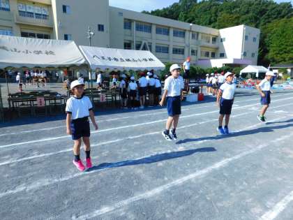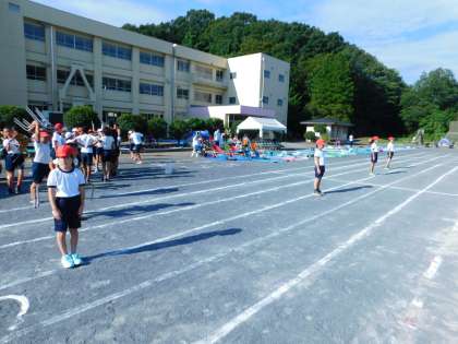 係児童が早目に登校し、最後のリハーサルです。写真は体操係です。