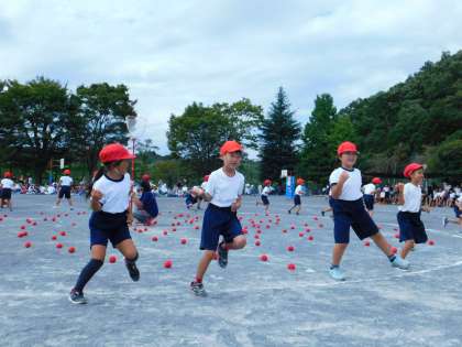 1年生の玉入れですが、球を投げるまでの間、全身を使って踊りをします。
