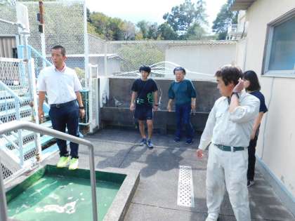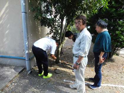学校プールの水道栓や凍結防止バルブの確認を、みんなで行いました。漏水事故を起こさないための取組です。