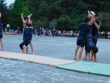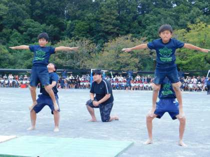 二人技の難所でもある、補助倒立からの肩車、そしてサボテンへの流れるような演技です。
