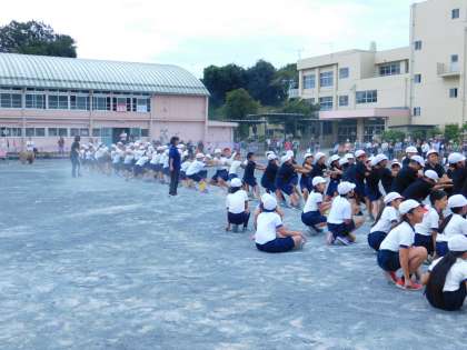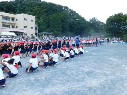 3・5年生が一緒に綱を引きます。大接戦。