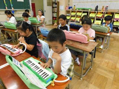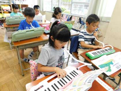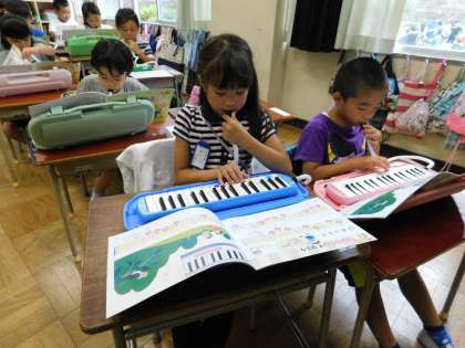 みんな真剣な表情で吹いていました。早く上手になってください。