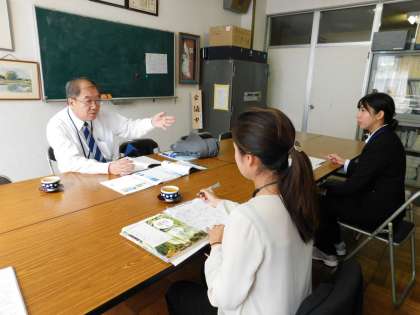 授業終了後、指導担当の先生と授業の反省をしました。先生からは、とてもよい授業でしたとのお言葉をいただきました。