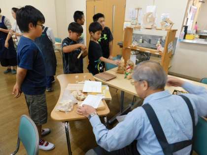 次回は、学校の図工室に出前授業に来ていただき、糸鋸の実習をしていただきます。