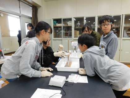 普段、学校では、準備できないような器具も使い、子供たちも興味を持って取り組んでいました。