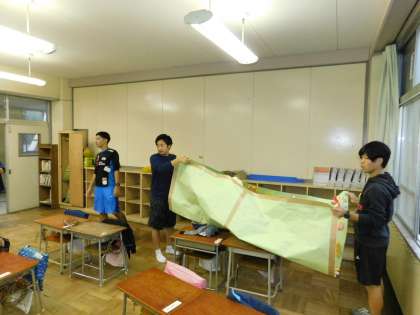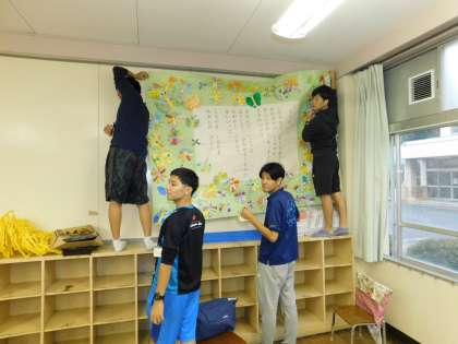 教室後ろの掲示物も、元通りに貼りなおします。