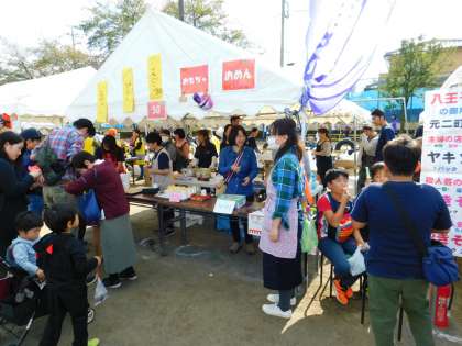 メイン会場となった元八王子小学校では、町会の出店がありました。