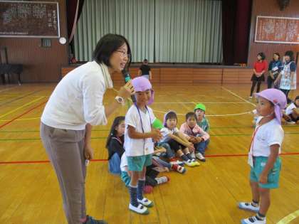 ゲームも終わり、園児から感想を話してもらっています。