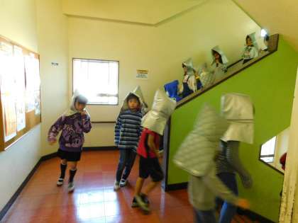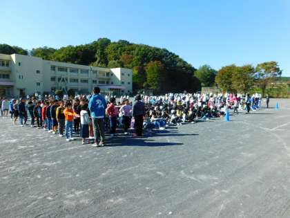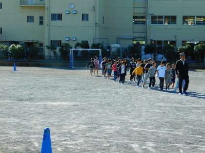11月の避難訓練は、地震を想定して校庭に避難しました。