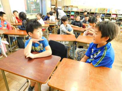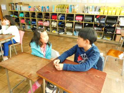 生活に使用する簡単な単語を使って、「好き嫌い」を質問したり答えたりしました。先生との会話例をたくさんした後、友達同士でも楽しそうに受け答えしていました。