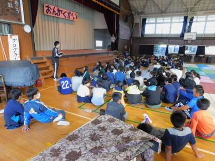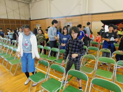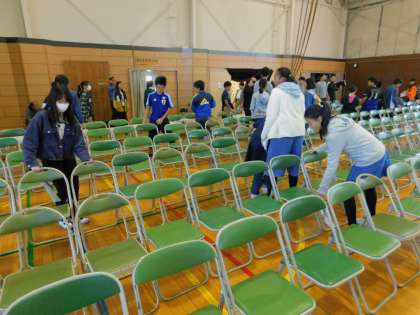 パイプ椅子並べも終わりました。最後に学芸的行事委員長の先生から、6年生に感謝の言葉をかけました。