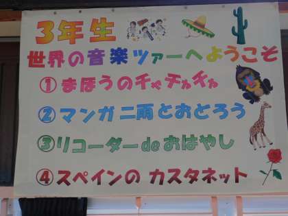 続いては3年生の演目です。3年生は「世界の音楽ツアーへようこそ」です。