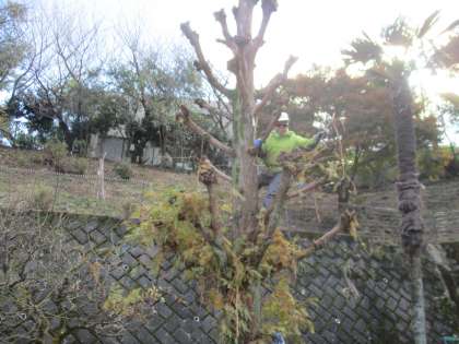正門近くのメタセコイアの木の葉を、用務主事さんがきれいにしました。