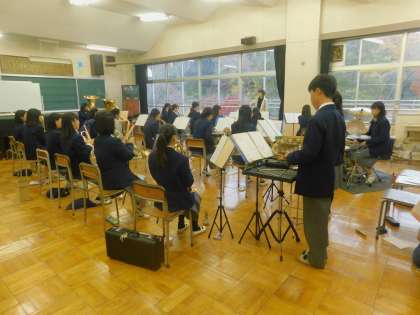 教室では吹奏楽部の生徒さんが、この後の演奏の練習をしていました。