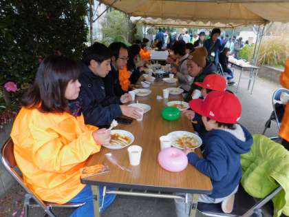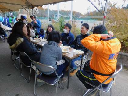 お昼の時間です。外は寒かったので、カレーライスの温かさがうれしかったです。味も抜群です。城山小と弐分方小の先生方です。