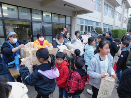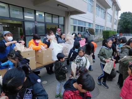 閉会式後はお待ちかねの「参加賞」です。みんな嬉しそうにもらっていきました。今年も雨に降られることなく実施できて、本当に良かったです。