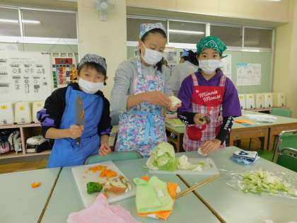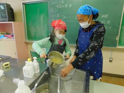 12月9日、6年1組が調理実習を行いました。「まかせてね 今日の食事」です。