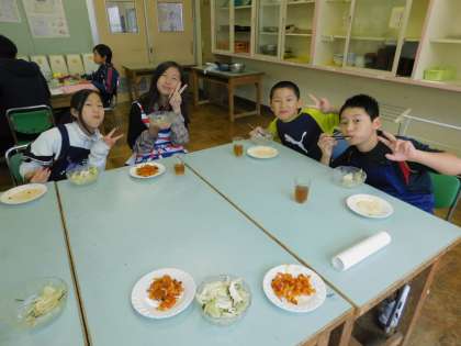 完成した班から「いただきます」をします。