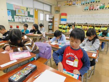 食べるだけではありません。栄養士の先生や給食調理員さんに、お礼のお手紙を書いています。