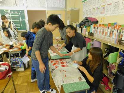 今日は自分たちの1/2成人式を記念して、「手形」をとります。