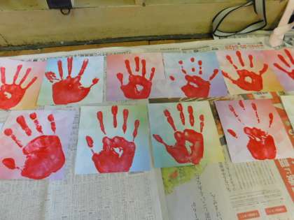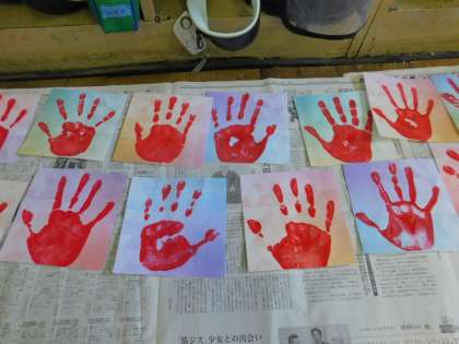 PTAの皆さん方、ありがとうございました。きれいな手形がそろいました。