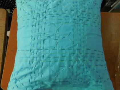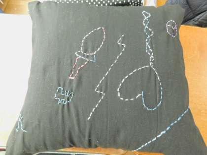 6年生が家庭科で作成した「クッション」です。一人ひとり刺繍が施されています。