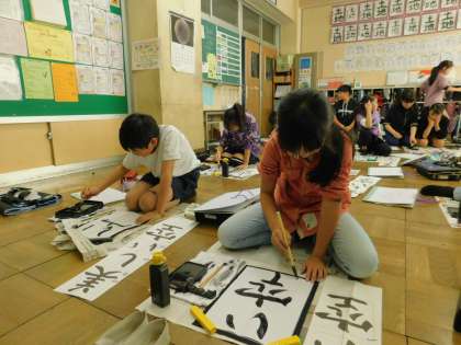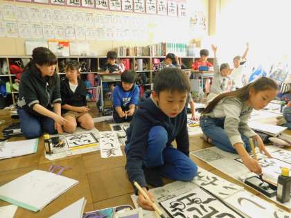 お手本を見ながら、一生懸命に。書いていました。のびのびとした良い文字でした。