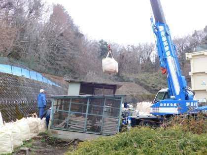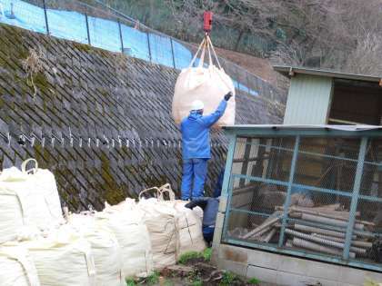 1月7日、トン袋を擁壁沿いに設置する作業が行われました。