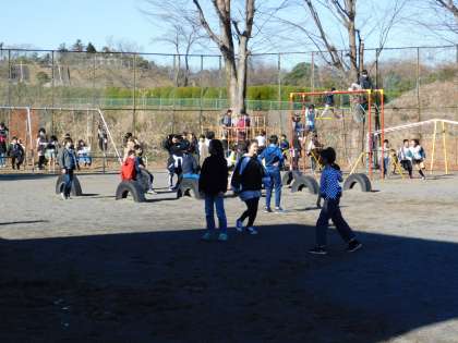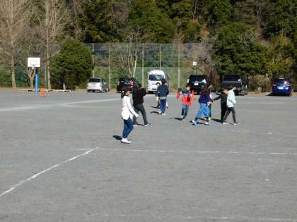 校庭では、6年生と1年生が色別の交流会をしていました。とても楽しかったようです。