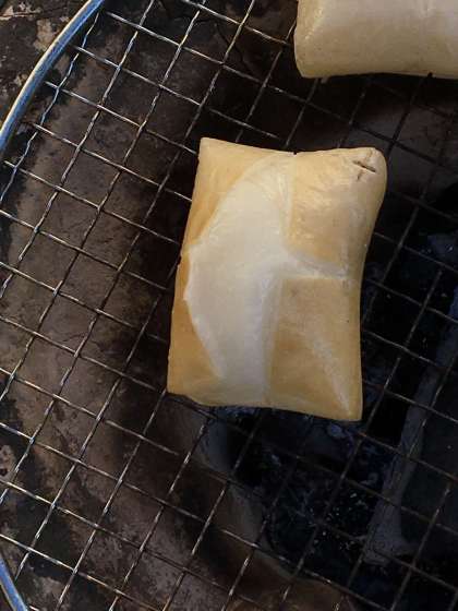 今日は七輪に炭をおこして、お餅やマシュマロ、するめなどを焼いて食べました。