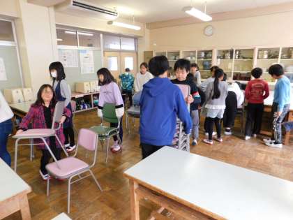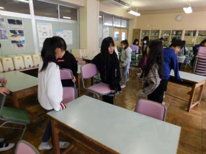 終了後、3組の子供たちが家庭科室の机やいすを元通りにしてくれました。ご苦労様。