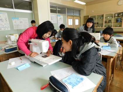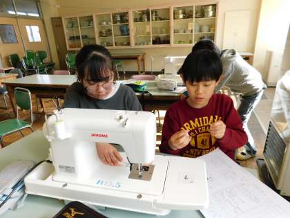みんな説明を聞き、一生懸命にミシンに糸をかけていました。