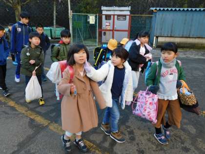 集団で通過中です。カメラを意識してか、ニヤニヤする子も・・・。