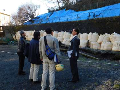 20日(月)、財務部長、施設管理課長、課員の皆さんが、予算計上のため、改めて本校の擁壁の様子を視察しに来られました。工事の日程が1年以上かかることもあるようです。被害の大きさがうかがわれます。
