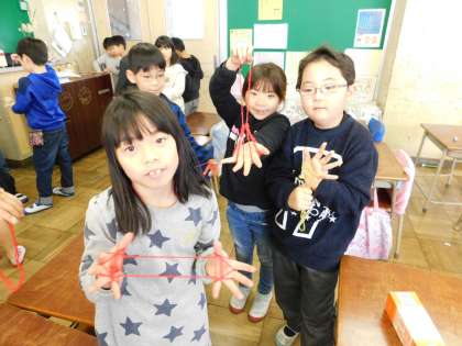 どうやら、自分たちの成長を振り返る単元で、お正月遊びを1年生の時と比べて、どのくらい成長したかを確かめていました。
