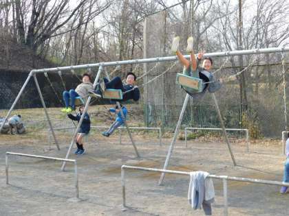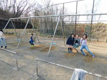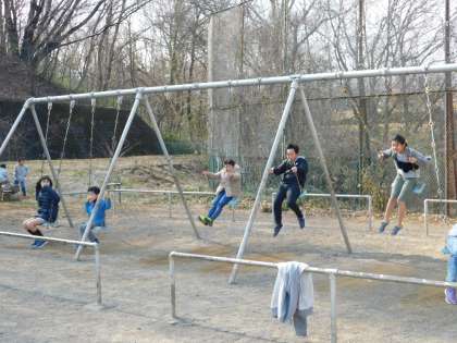 ブランコでは、珍しく6年生が遊んでいました。