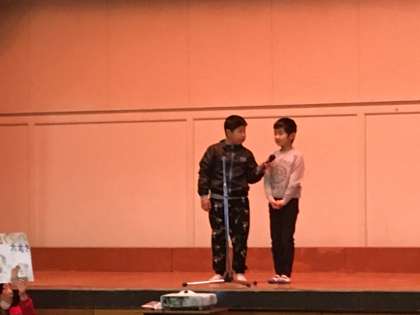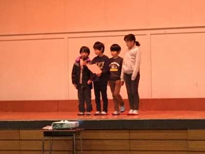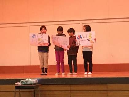 今日は、体育館で子供祭りPR集会がありました。