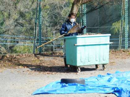 先週は風が冷たい日が多かったのですが、用務主事さんが校庭の落ち葉を処理してくれていました。