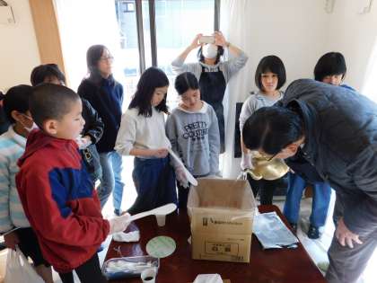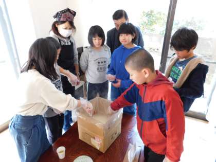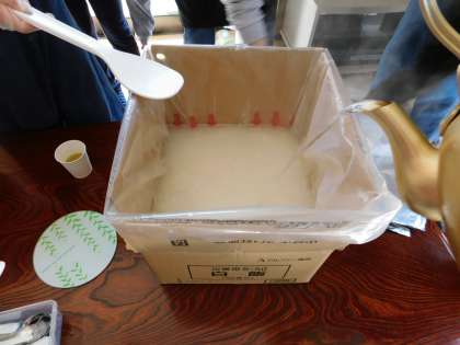 仕上げは、お湯を規定線まで入れて、口を結びます。30分待ちましょう。