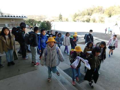 2月12日、子供たちは城山小・中学校一貫教育研修会のため、全学年5時間授業の一斉下校です。さようなら。また明日ね。