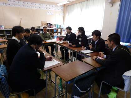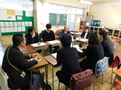2月12日、城山小・城山中学校の先生方が集まり、小中一貫教育研修会を実施しました。中学校の先生方に、5時間目の授業を参観してもらった後、分科会に分かれて協議会を行いました。